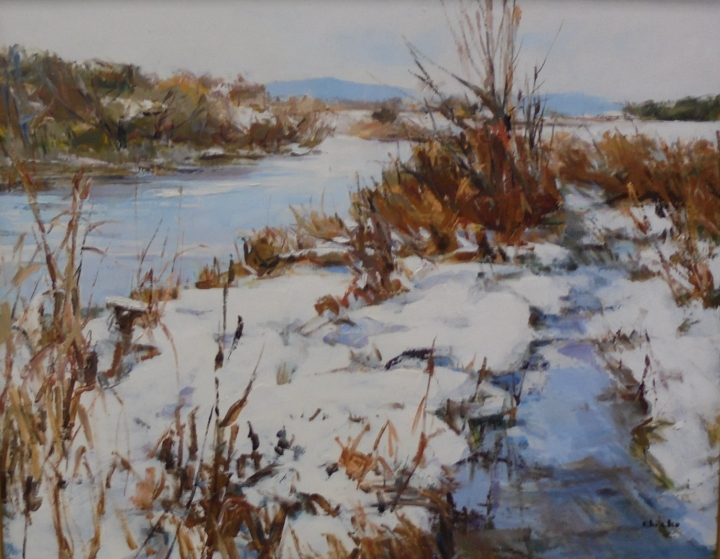 早春の水辺(油彩) 大潮会代表 加古 千恵子 (愛知)